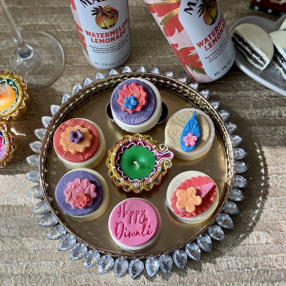 A beautiful Diwali hand decorated coated Oreo personalised gift, a wonderful alternative (and eggless) sweet treat to gift loved ones.